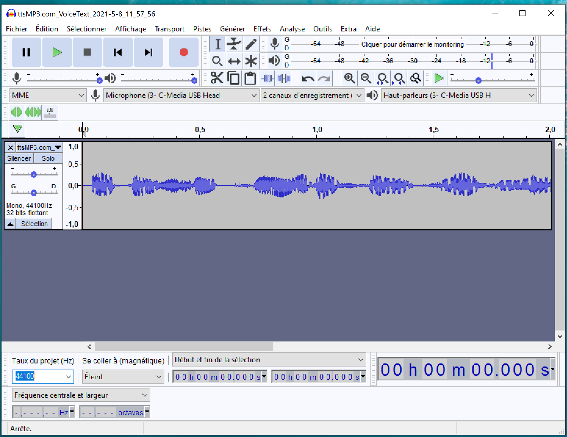 - A gauche du graphique il doit être écrit : Stéréo, 44100Hz 32bits flotants.